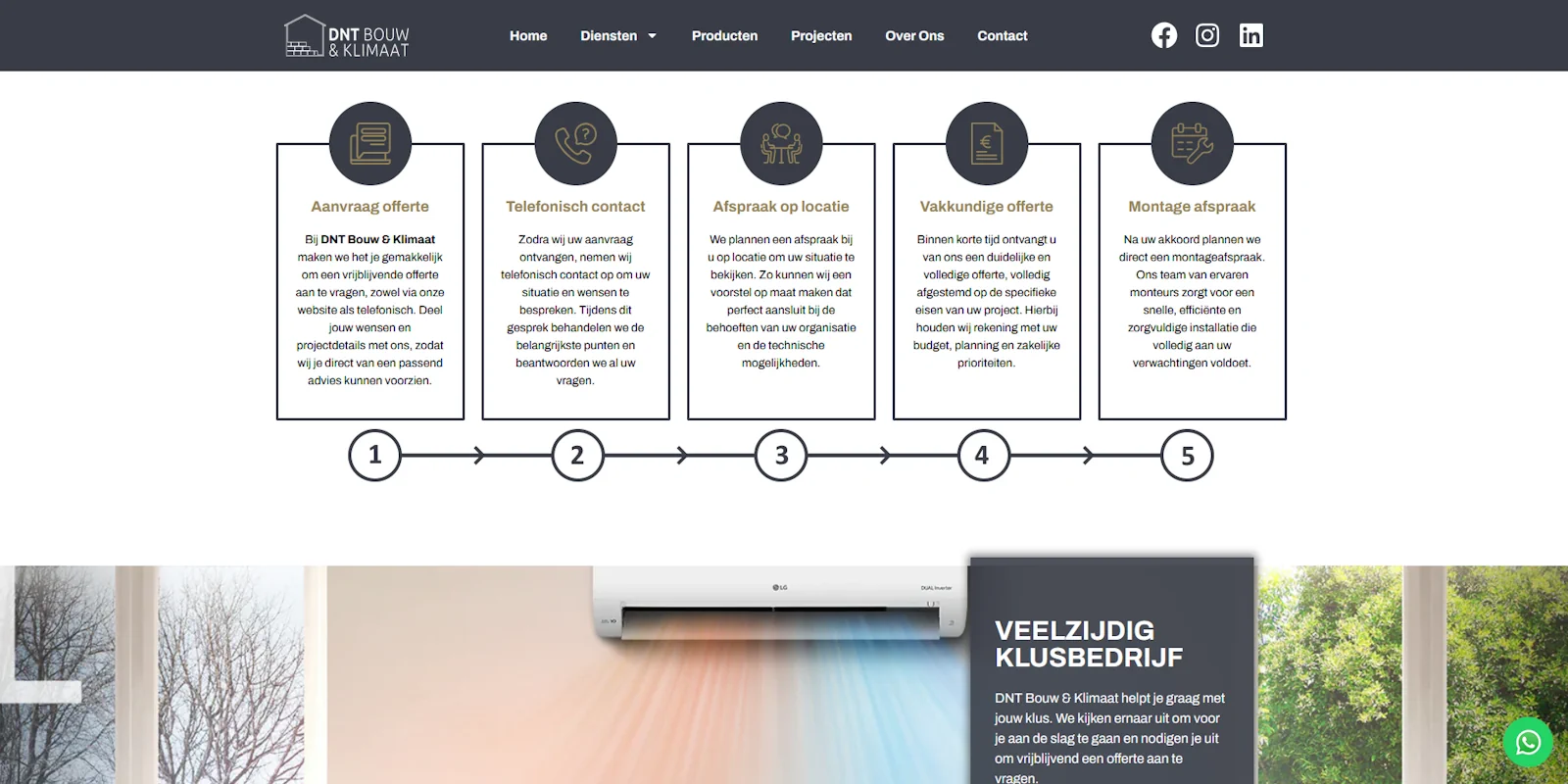 De nieuwe website voor DNT Bouw & Klimaat heeft een strakke en eigentijdse uitstraling gekregen. We hebben de navigatie duidelijk gemaakt door een diensten tegels op de home page te plaatsen, alle pagina’s voorzien van een frisse lay-out en de inhoud geoptimaliseerd voor SEO zodat deze hoog scoort in google. Zowel wij als de eigenaar zijn erg tevreden met het resultaat. We wensen hem veel succes en plezier met de nieuwe website!